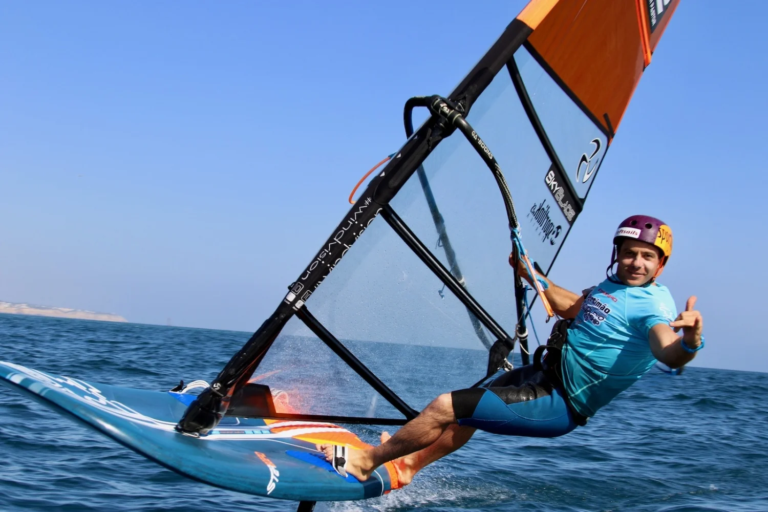 Ramón: First of all you should have a minimum windsurfing level, you need to be able to plane in the footstraps and use the harness. So, then, to start foiling, make it simple, use your current wave or freeride 5.0 - 5.8 m2 sail and a 75 - 85 cm wide freeride board with an aluminium foil. When you fully control this set up you can take a cambered sail to have more power and stability, our Skyscape would be a great choice. In terms of trim, do not put too much downhole tension as the leech needs to be tighter for better stability and control compared to when normal windsurfing.